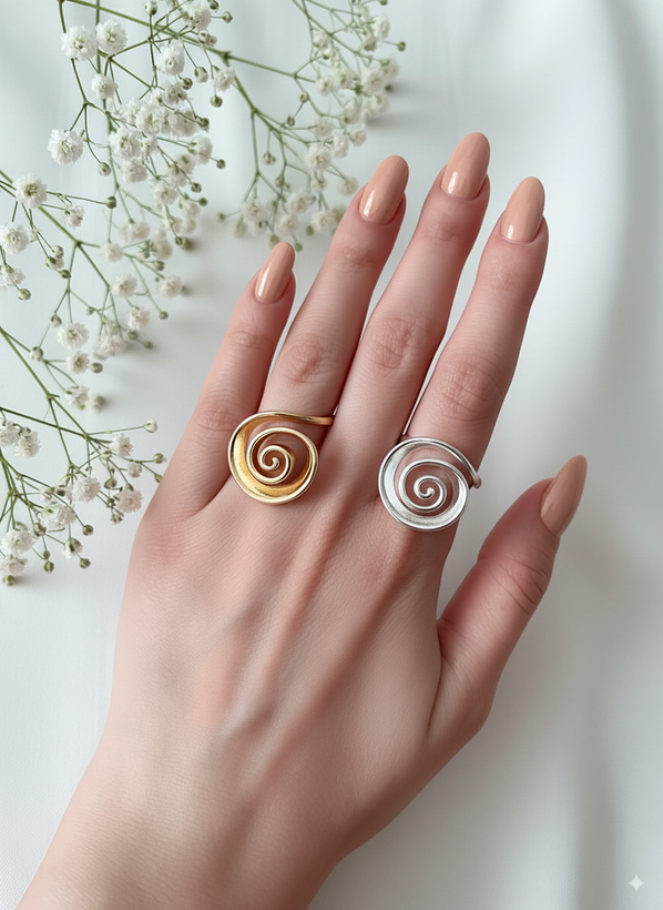 طراحی مینیمال با فرم مارپیچ ترکیبی از لطافت و شکوه در دو رنگ طلایی و نقرهای.