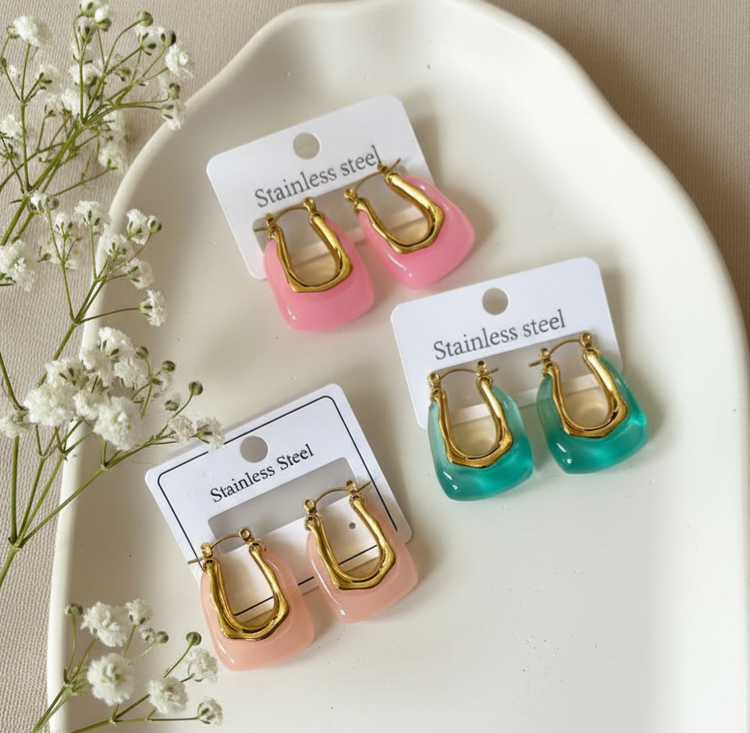 گوشواره رزینی مدل مستطیلی با پایه ضد حساسیت با آبکاری رودیوم